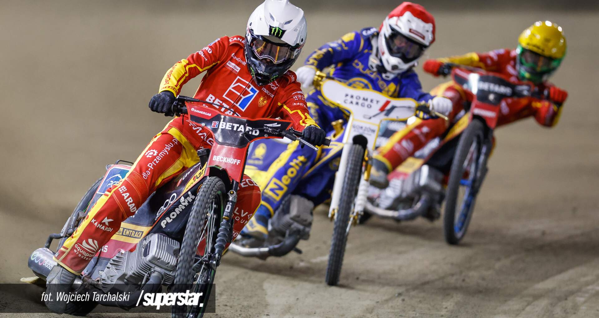 Bieg 1. został przerwany po upadku Bartłomieja Kowalskiego na pierwszym łuku – powtórka, która odbyła się w pełnym składzie, wygrana została przez Spartan. Pewnie 3 punkty zdobył Brady Kurtz, a nasz zawodnik U24 ostatecznie przeciął linię mety jako trzeci, gdy na dystansie minął go Jack Holder. W wyścigu młodzieżowym lepsi okazali się gospodarze, wygrywając podwójnie; 1 punkt dla Betard Sparty przywiózł Mikkel Andersen. Tym samym wynikiem zakończył się bieg 3., w którym najszybszy okazał się Anders Thomsen, a za nim linię mety przecięli kolejno Mathias Pollestad, Dan Bewley i Artem Laguta. Spartanie odrobili straty w kolejnym wyścigu, wygrywając podwójnie – „trójkę” przywiózł Marcel Kowolik, a „dwójkę” z bonusem zdobył Maciej Janowski.